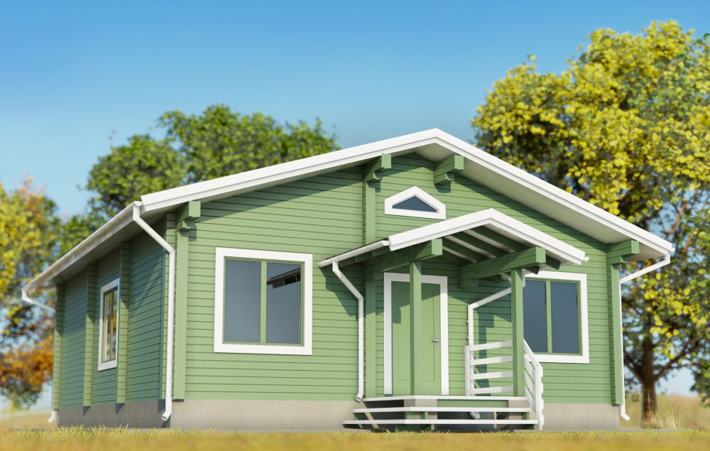 Одноэтажный дом из профилированного бруса, сочетающий классические элементы домостроения и современные тенденции. Особенно стоит отметить роскошную и просторную террасу этого экологичного и комфортного дома.